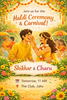 🎊 Please grace us with your presence to celebrate the Haldi Ceremony & Carnival.
